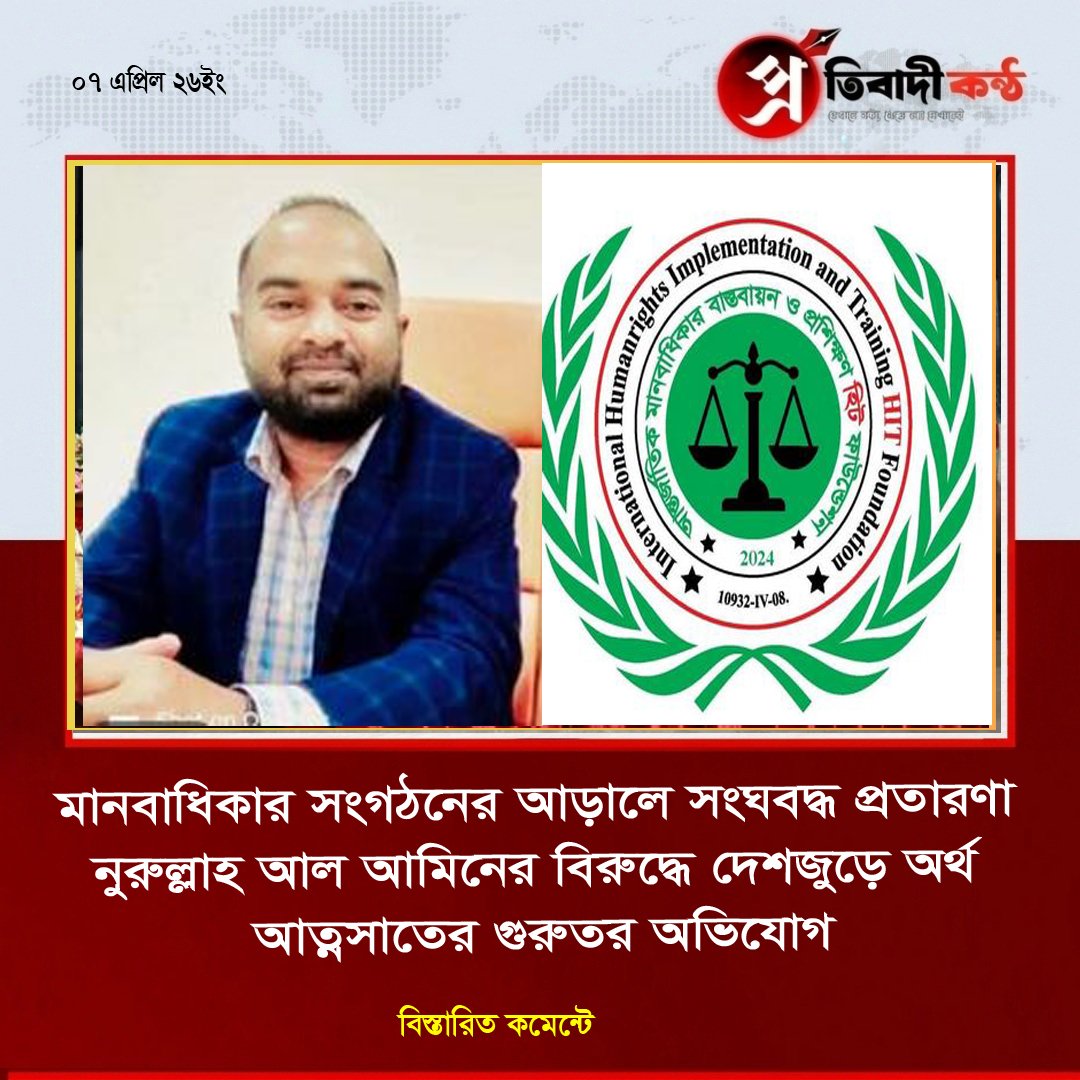 - মানবাধিকার সংগঠনের আড়ালে সংঘবদ্ধ প্রতারণা—নুরুল্লাহ আল আমিনের বিরুদ্ধে দেশজুড়ে অর্থ আত্মসাতের গুরুতর অভিযোগ
