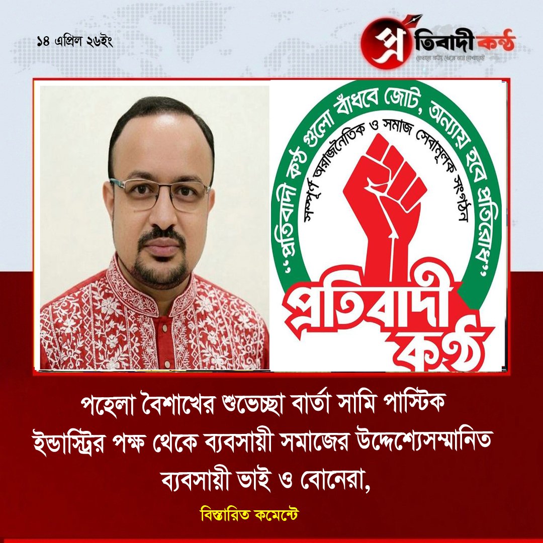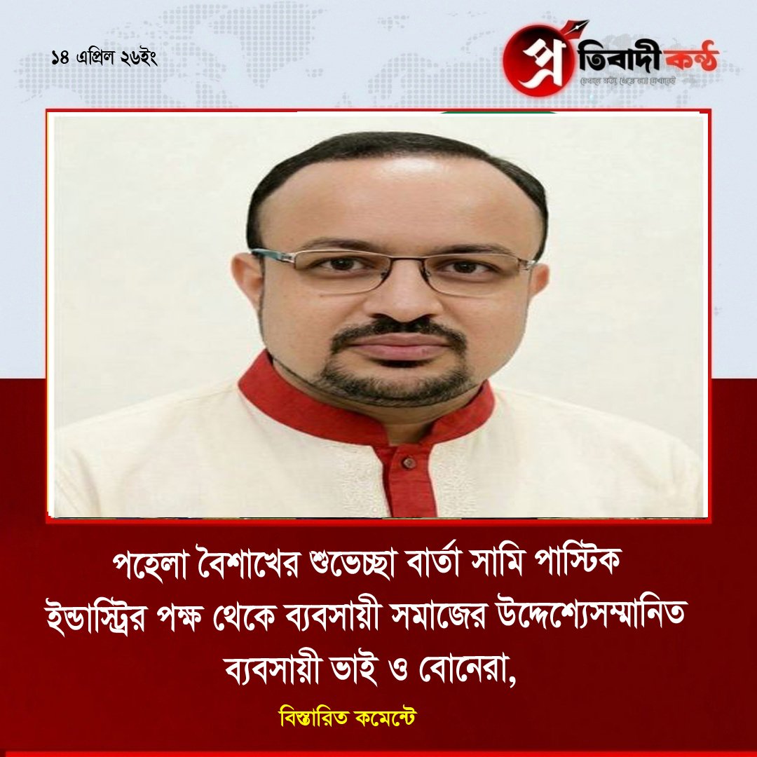 - পহেলা বৈশাখের শুভেচ্ছা বার্তা সামি প্লাস্টিক ইন্ডাস্ট্রির পক্ষ থেকে ব্যবসায়ী সমাজের উদ্দেশ্যে সম্মানিত ব্যবসায়ী ভাই ও বোনেরা,