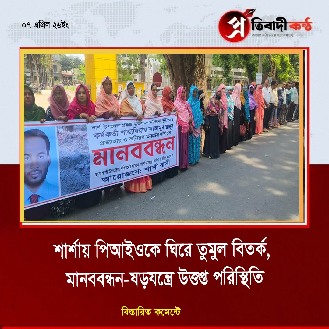 - শার্শায় পিআইওকে ঘিরে তুমুল বিতর্ক, মানববন্ধন-ষড়যন্ত্রে উত্তপ্ত পরিস্থিতি
