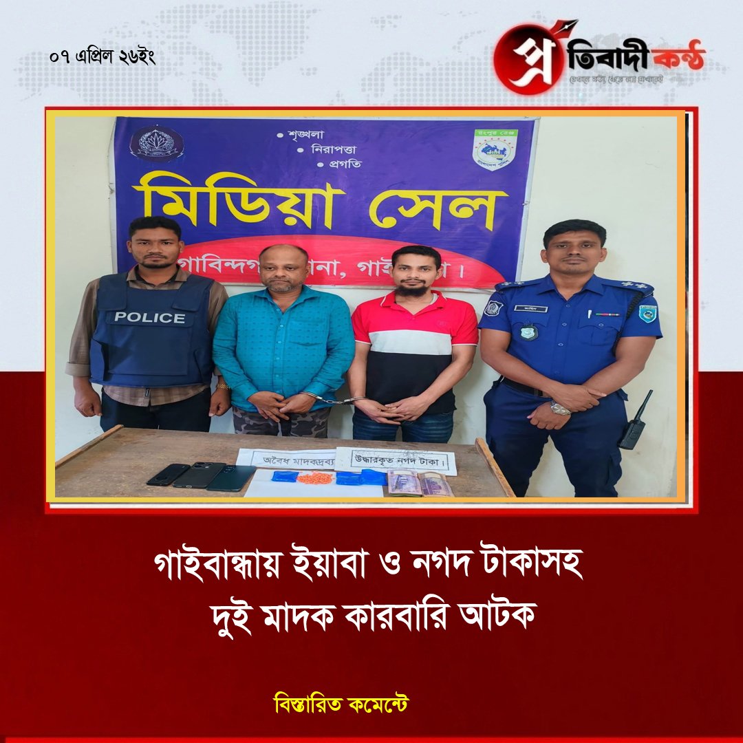 - গাইবান্ধায় ইয়াবা ও নগদ টাকাসহ দুই মাদক কারবারি আটক