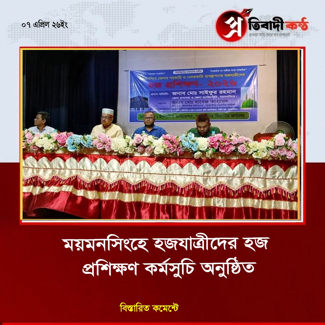 - ময়মনসিংহে হজযাত্রীদের হজ প্রশিক্ষণ কর্মসুচি অনুষ্ঠিত