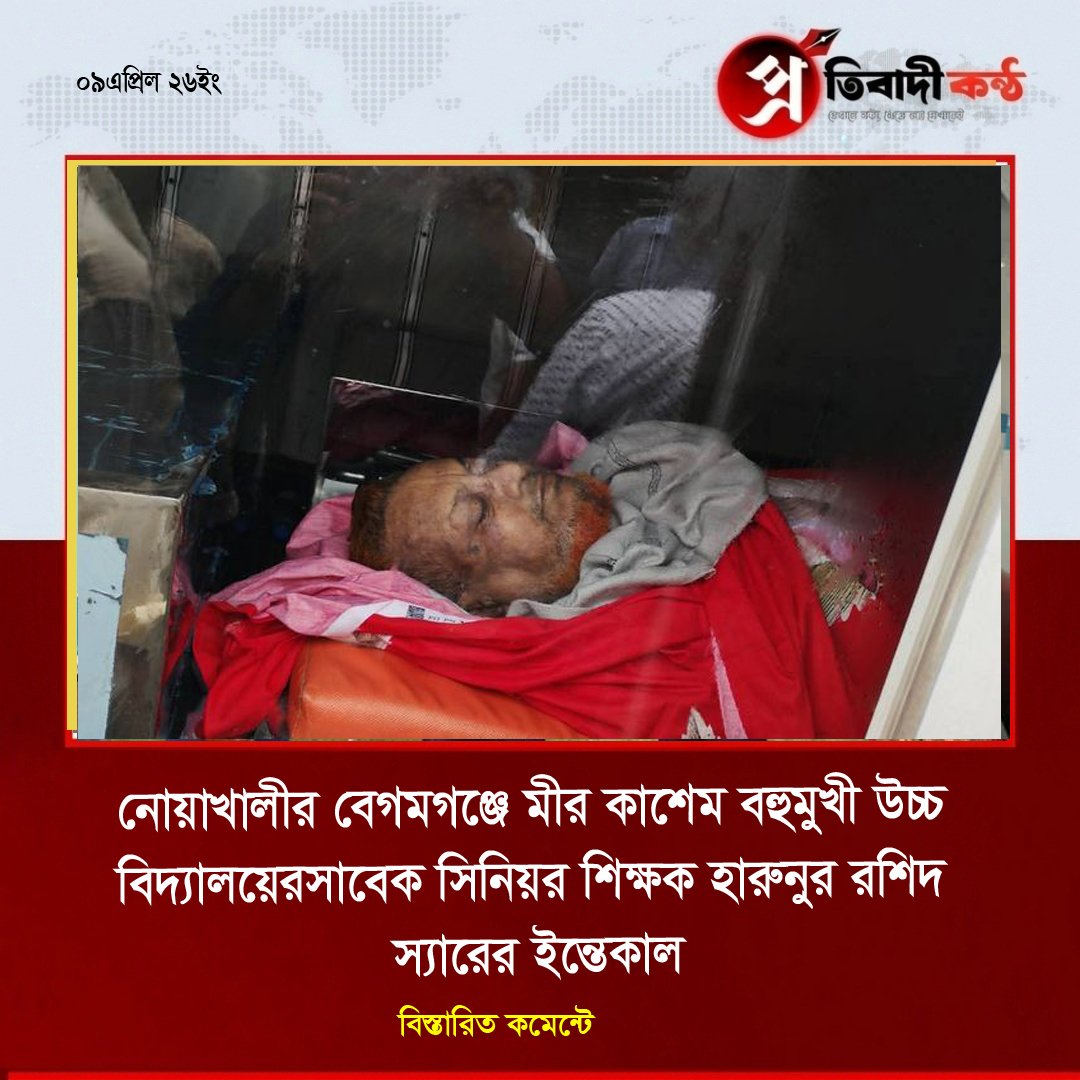 - নোয়াখালীর বেগমগঞ্জে মীর কাশেম বহুমুখী উচ্চ বিদ্যালয়ের সাবেক সিনিয়র শিক্ষক হারুনুর রশিদ স্যারের ইন্তেকাল