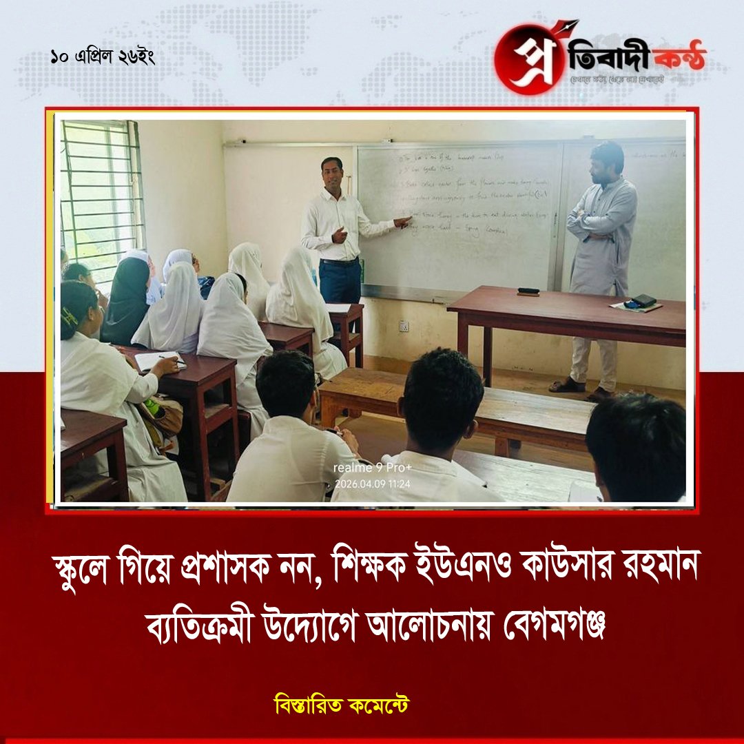 - স্কুলে গিয়ে প্রশাসক নন, শিক্ষক ইউএনও কাউসার রহমান—ব্যতিক্রমী উদ্যোগে আলোচনায় বেগমগঞ্জ
