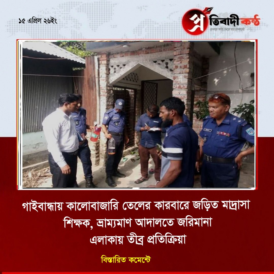 - গাইবান্ধায় কালোবাজারি তেলের কারবারে জড়িত মাদ্রাসা শিক্ষক, ভ্রাম্যমাণ আদালতে জরিমানা—এলাকায় তীব্র প্রতিক্রিয়া