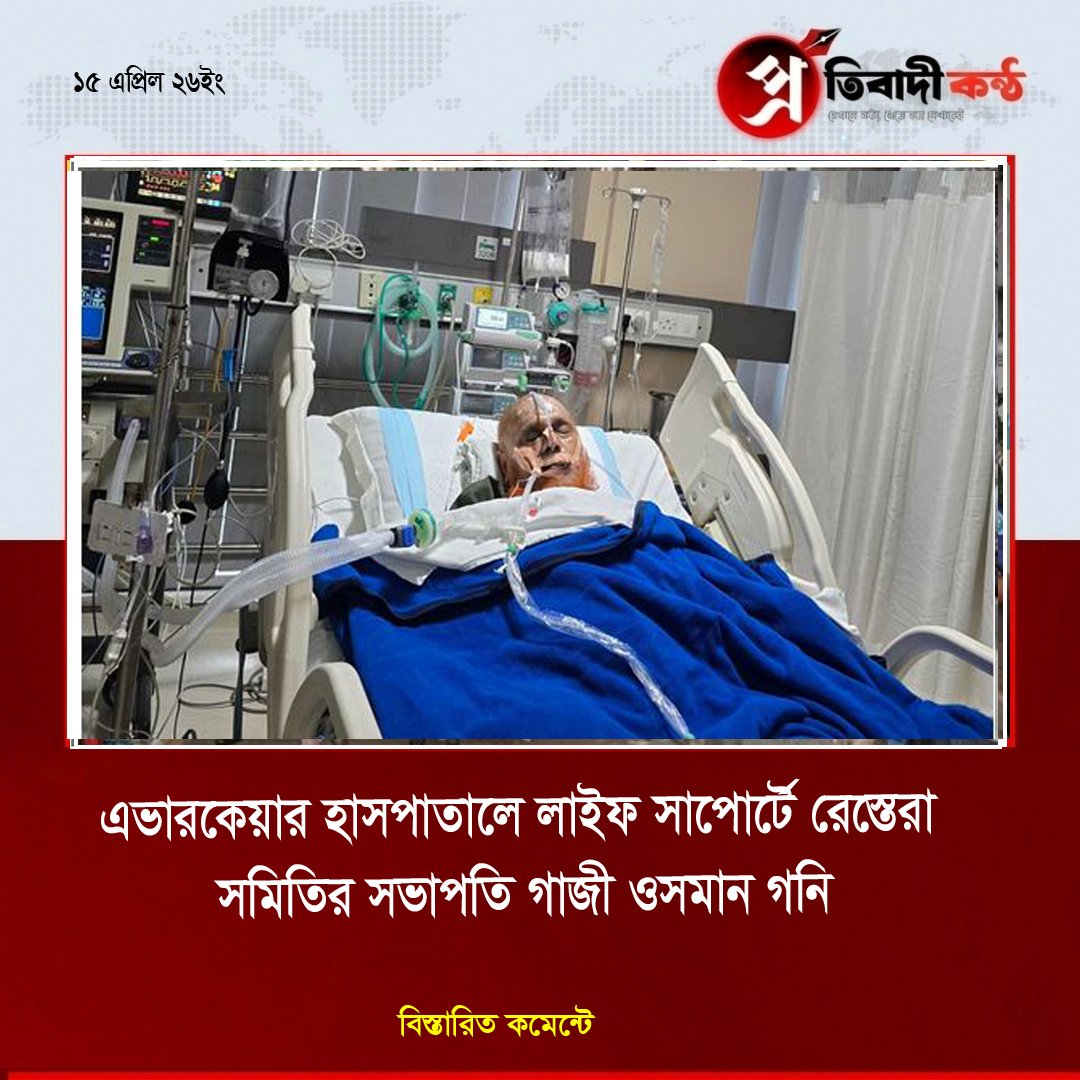 - এভারকেয়ার হাসপাতালে লাইফ সাপোর্টে রেস্তোরা সমিতির সভাপতি গাজী ওসমান গনি