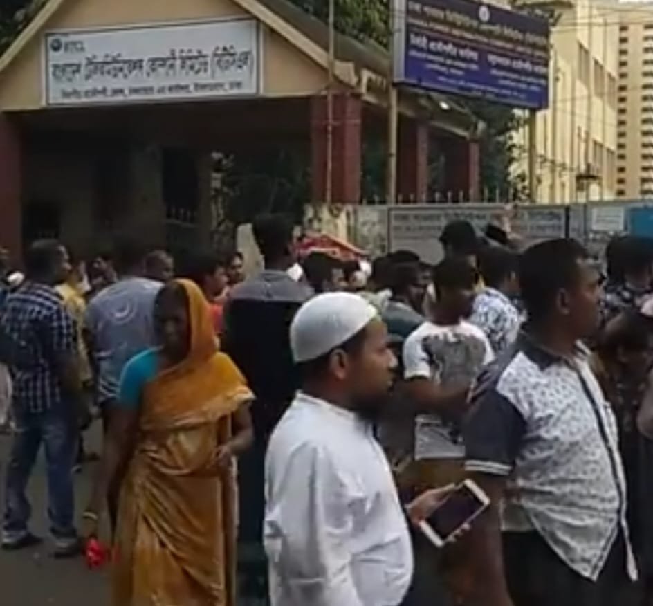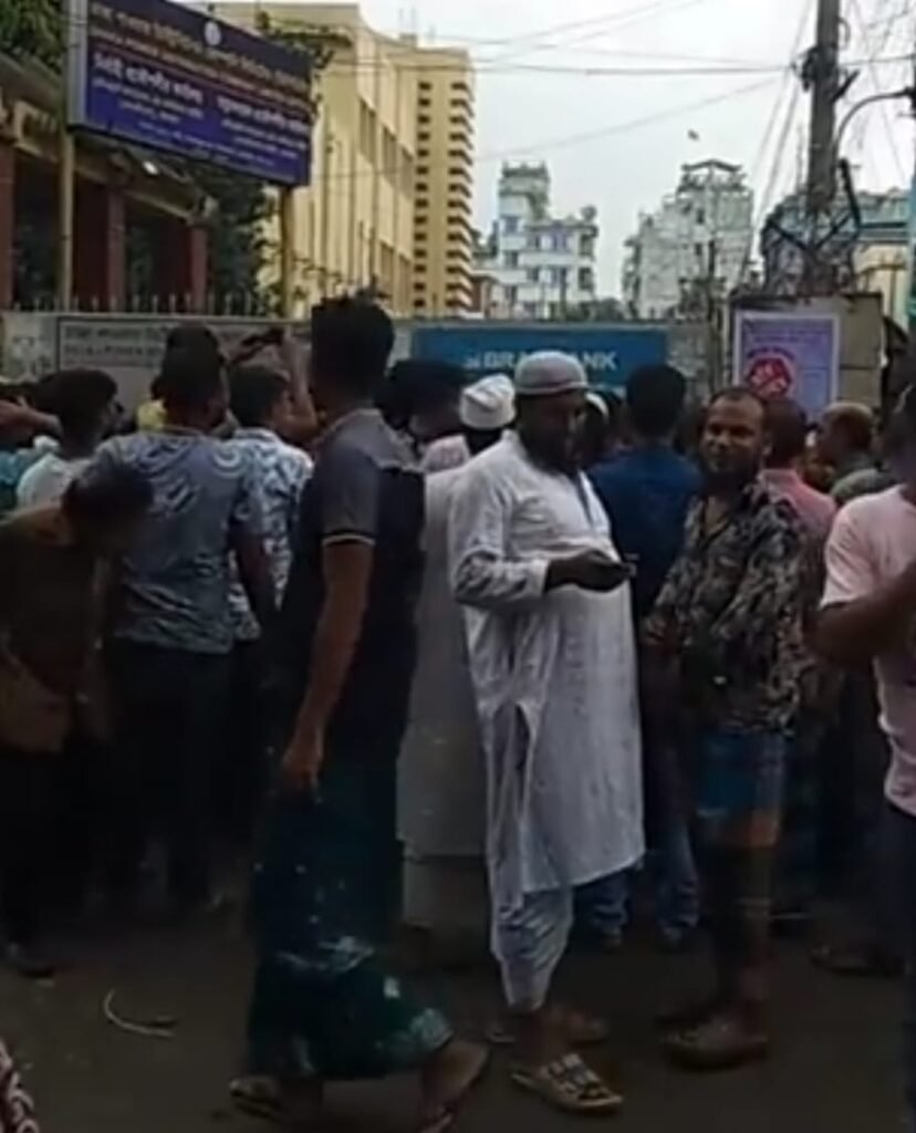অনেকে গেটের বাইরে জড়ো হয়ে ক্ষোভ প্রকাশ করতে থাকেন।