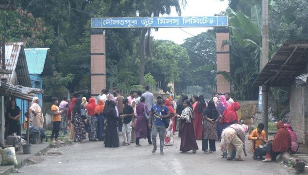 খুলনার দৌলতপুর জুট মিল প্রাঙ্গণে অবস্থিত ‘ইউনি ওয়ার্ল্ড ফুটওয়্যার লিমিটেড’ হঠাৎ করে লে-আউট (সাময়িক বন্ধ ঘোষণা) করায় চরম অনিশ্চয়তায় পড়েছেন কারখানাটির চার শতাধিক শ্রমিক। শনিবার (২৮ জুন) মিল গেটে টানানো এক নোটিশে জানানো হয়, গত ২৬ জুন থেকে প্রতিষ্ঠানটি কার্যক্রম বন্ধ ঘোষণা করেছে কর্তৃপক্ষ।