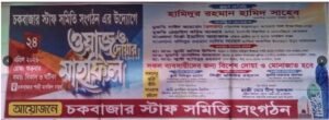 পবিত্র জুমার দিনে রাজধানীর ঐতিহ্যবাহী চকবাজার শাহী মসজিদ চত্বরে “চকবাজার স্টাফ সমিতি”-এর উদ্যোগে এক জাঁকজমকপূর্ণ বিশেষ ওয়াজ ও দোয়া মাহফিল অনুষ্ঠিত হয়েছে।