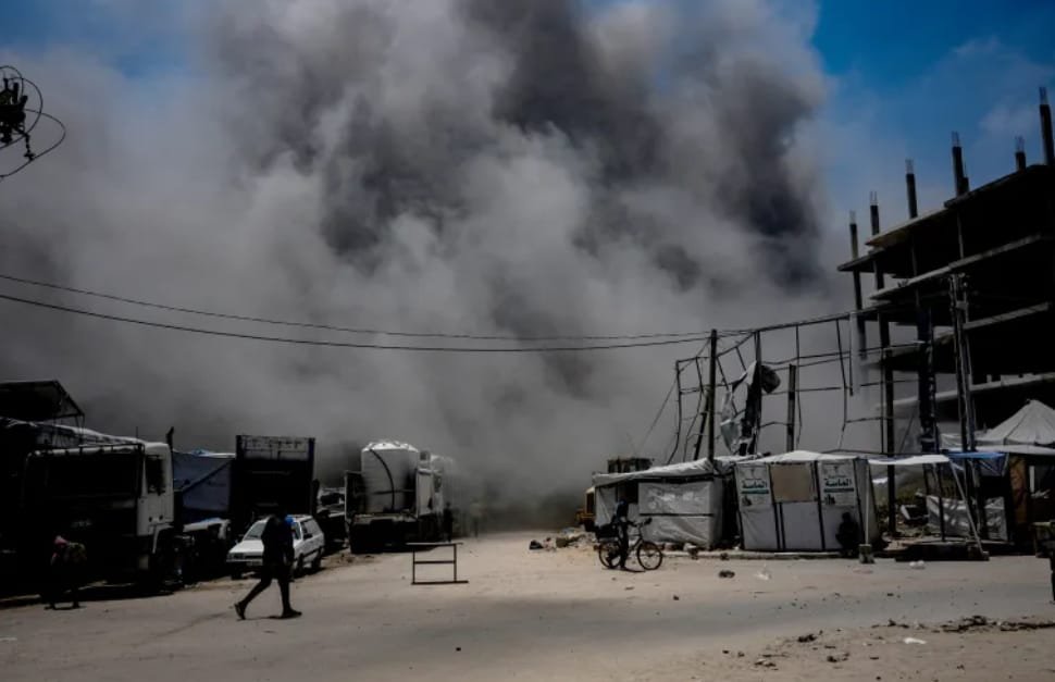 গাজা সিটির এক আবাসিক এলাকায় ইসরায়েলি হামলার পর কালো ধোঁয়া আর ধুলার ভেতর দিয়ে হেঁটে ফিরছেন এক ফিলিস্তিনি নারী—এই দৃশ্য যেন যুদ্ধবিধ্বস্ত জীবনের প্রতিচ্ছবি।