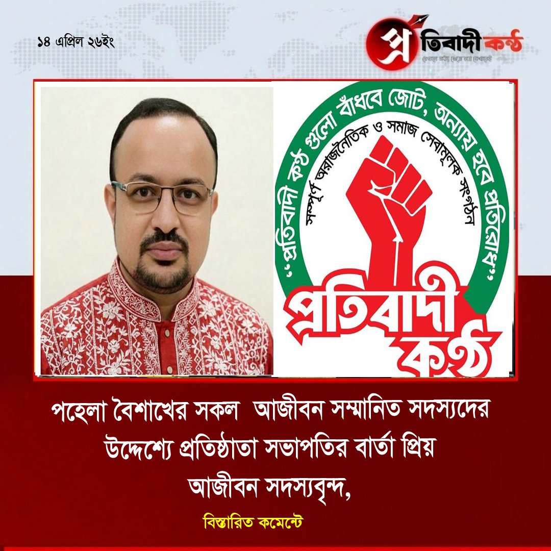পহেলা বৈশাখের আন্তরিক শুভেচ্ছা ও অভিনন্দন জানাই আপনাদের সকলকে। নতুন বছরের এই শুভক্ষণে ব্যবসা-বাণিজ্যে নতুন সম্ভাবনা, সাফল্য ও সমৃদ্ধি আসুক—এই কামনা করি।