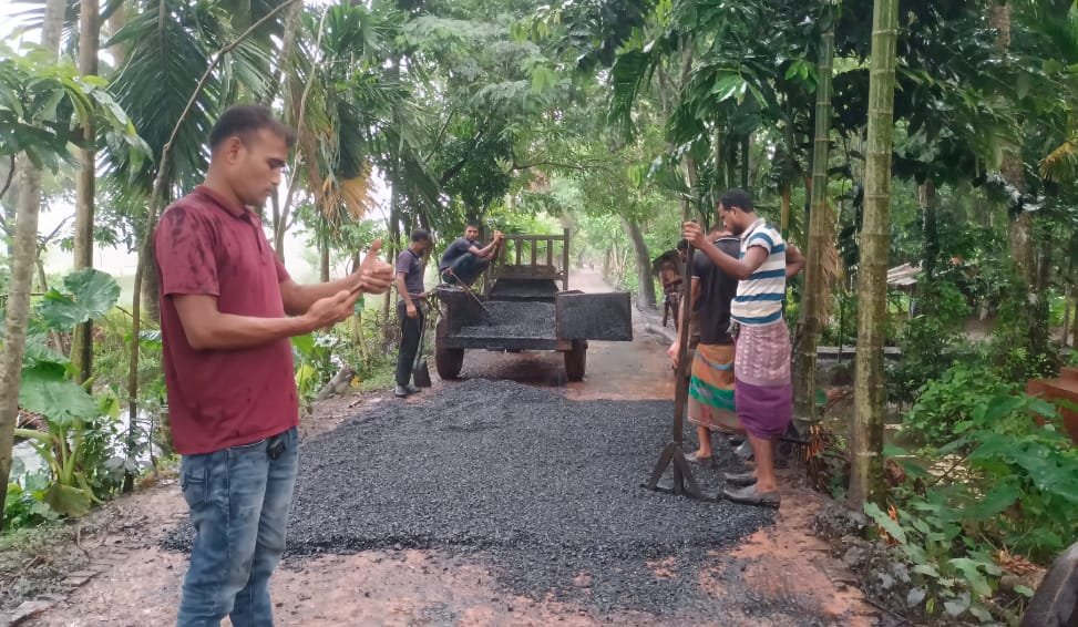 বরগুনায় বৃষ্টির মধ্যেই সড়কে পিচ ঢালাই: অনিয়মে ক্ষোভ স্থানীয়দের